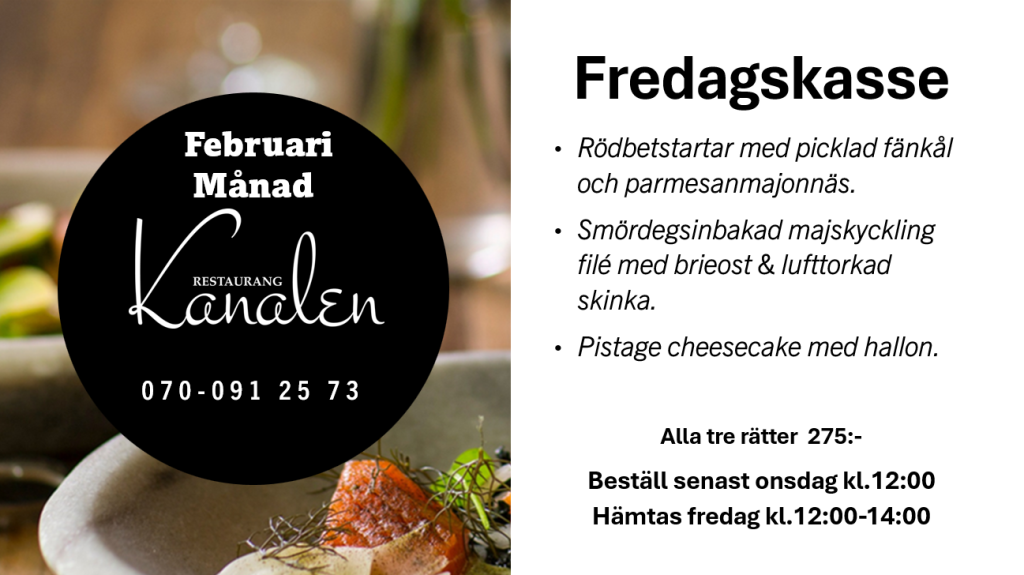 Vi erbjuder middag alla kvällar i veckan med ett sällskap på minst 10 personer där samtliga i sällskapet beställer samma meny. Specialbeställning för veg eller allergier går självklart bra.